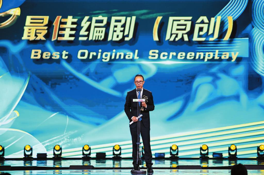 图为6月23日晚,王小枪在第28届上海电视节“白玉兰绽放”颁奖典礼上。