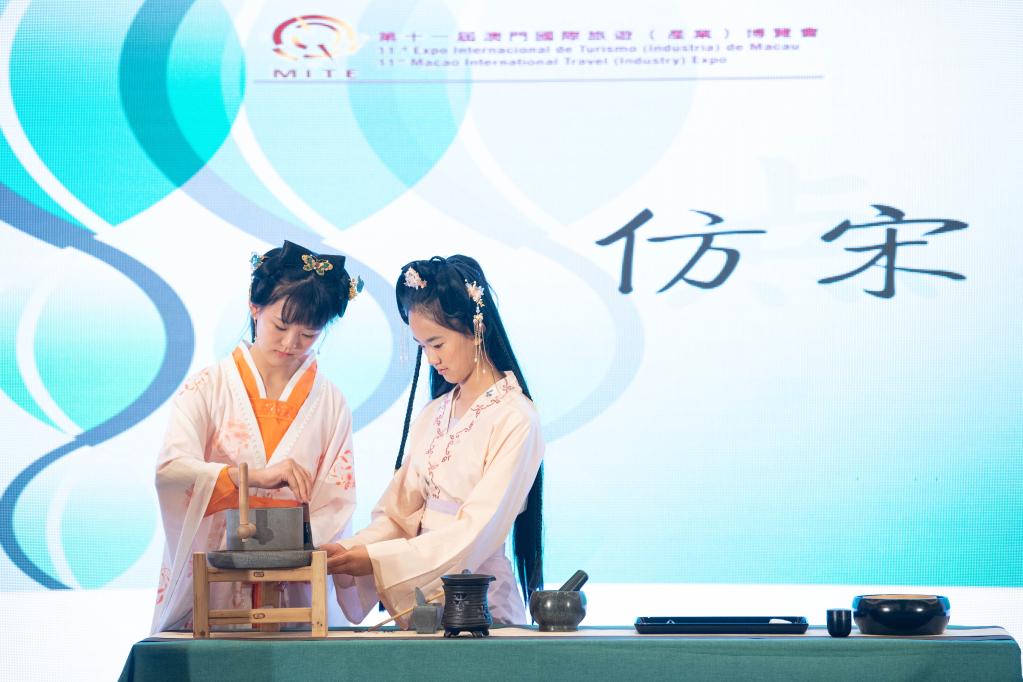 6月30日,表演者在澳门“茶和天下·雅集”暨茶文化之旅主题推广活动上展示仿宋点茶。新华社记者 张金加 摄
