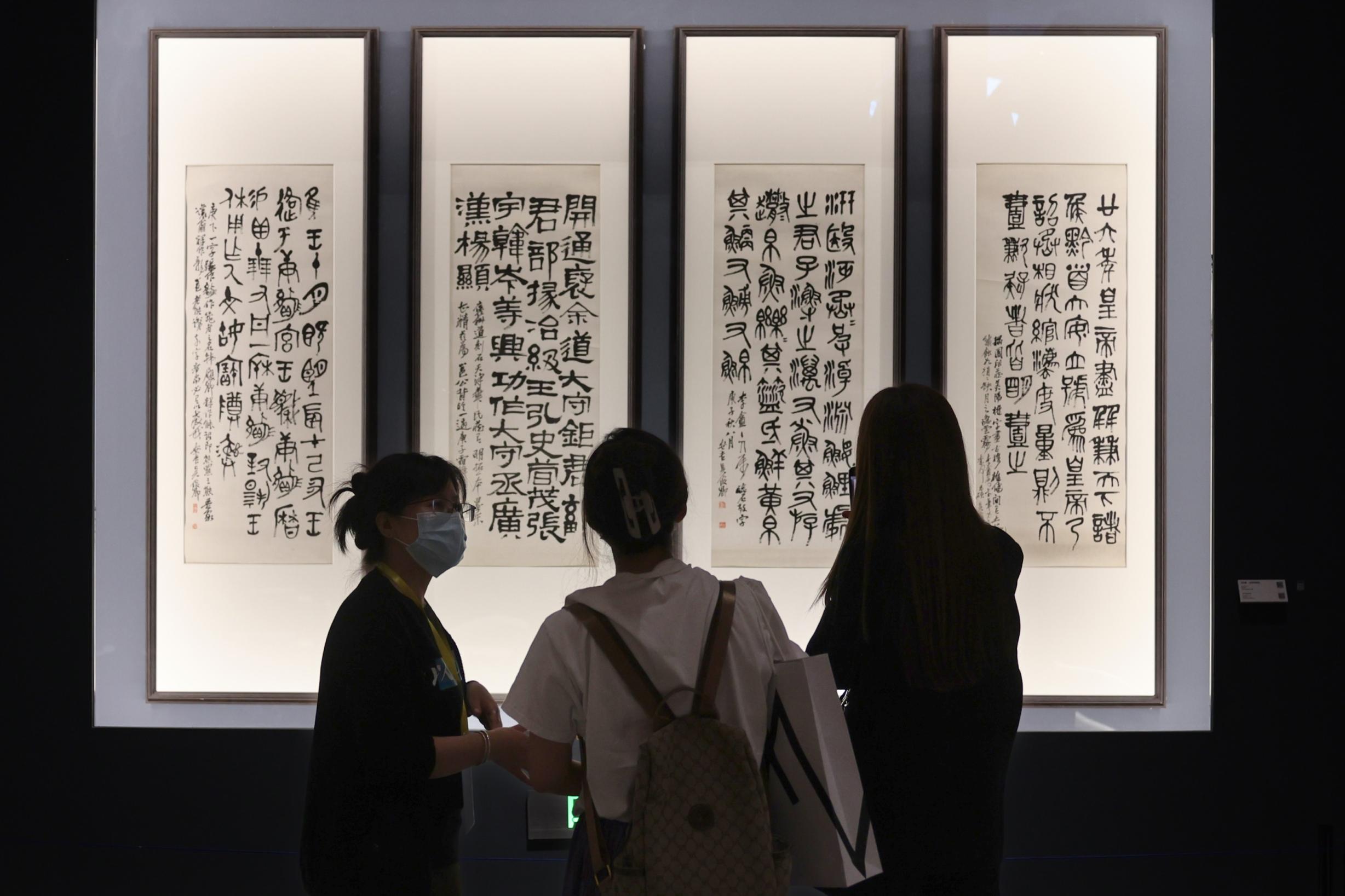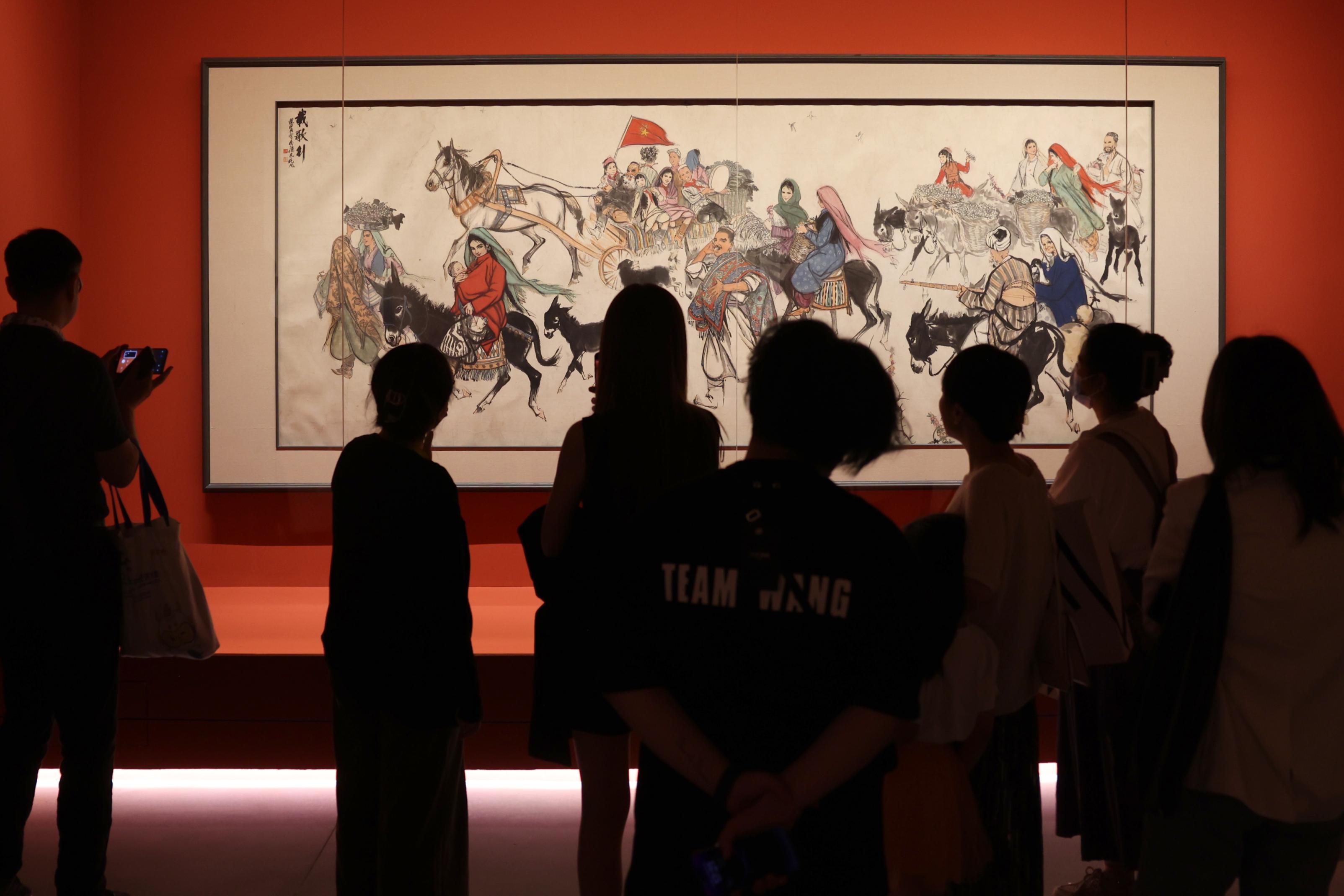 齐白石、张大千、徐悲鸿、傅抱石、吴昌硕、黄宾虹、潘天寿、林风眠、李可染、刘海粟、李苦禅……一长串在美术史上夺目的姓名,在同一个展览上相遇。7月8日,“文明的传承:以启山林——百年巨匠艺术大展”在北京民生现代美术馆开幕。此次展览共展出40余位艺术巨匠的近200组件重要代表作品,以珍贵原作和沉浸式体验场景,为观众推开巨匠大师之门,解读他们的“艺术密码”。