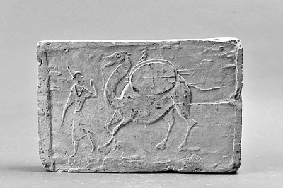 唐模制商旅砖上牵驼的胡商。 敦煌市博物馆供图