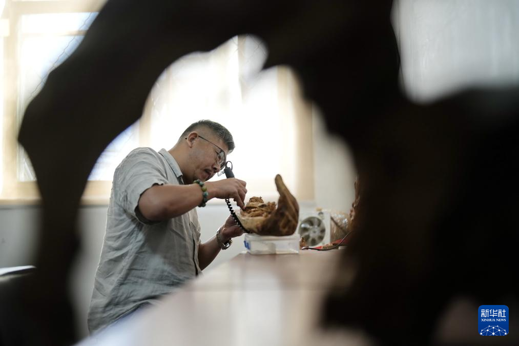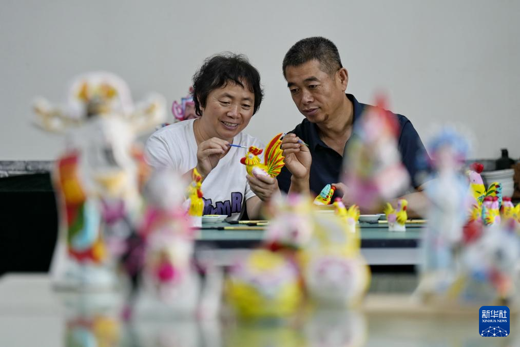 近年来,河北省唐山市玉田县不断加大对当地非物质文化遗产的传承和保护力度,建设“非遗会客厅”,内设传承人工作室、非遗体验工坊等场所,将玉田泥塑、玉田木雕、皮影戏、剪纸等非物质文化遗产项目集中展示,并致力于非遗文创产品的开发,为市民提供了能够近距离感受非遗魅力的新型公共文化空间。(新华社记者 牟宇 摄)