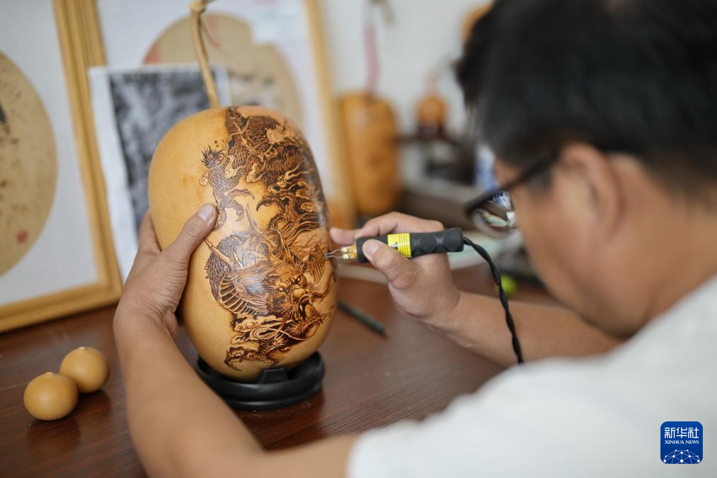 9月16日,烙画艺人在玉田县“非遗会客厅”工作室内制作烙画。