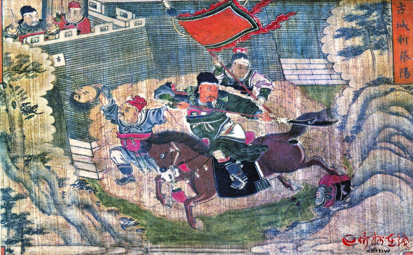 五台山塔院寺伽蓝殿清代壁画——古城斩蔡阳图