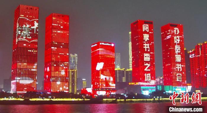 长沙湘江两岸同步上演的岳麓书会主题灯光秀。主办方供图
