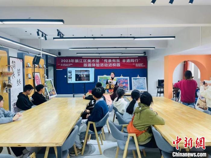 图为綦江农民版画走进校园活动现场。 綦江农民版画院 供图