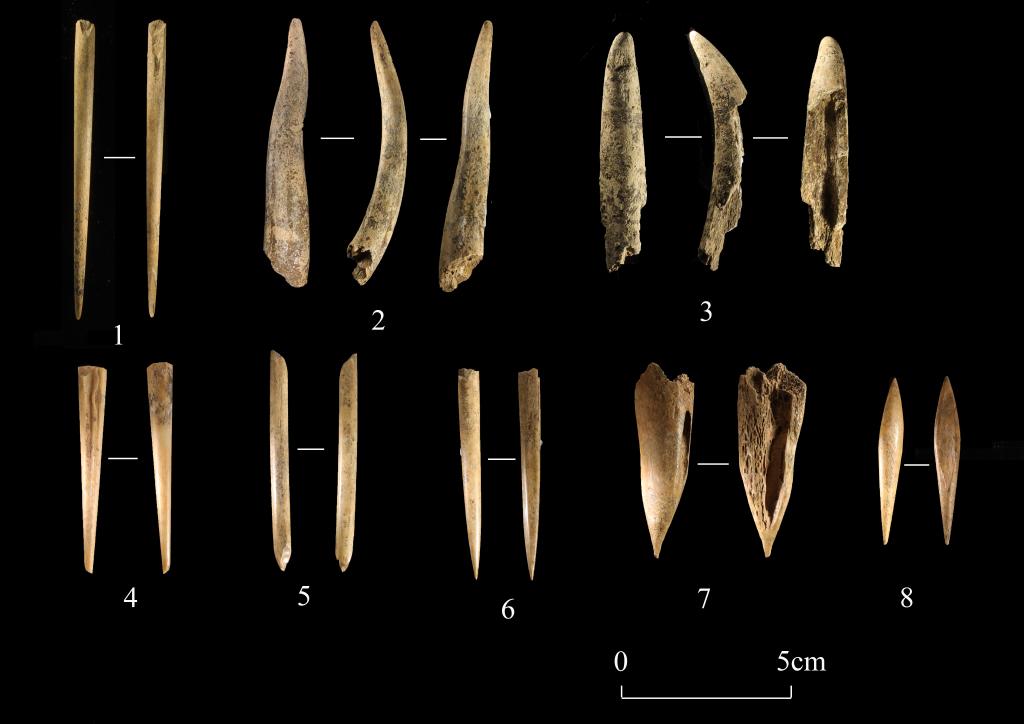 青池遗址第II发掘区出土的骨针、骨锥和骨角器(新石器时代)。天津市文化遗产保护中心供图