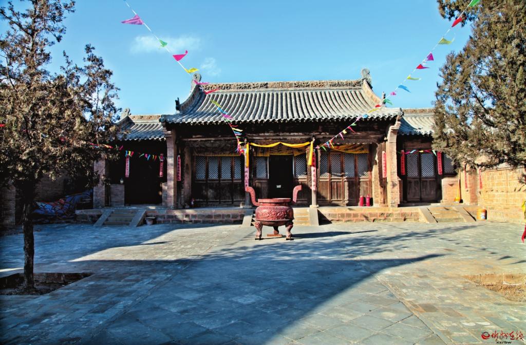 关帝庙:现存建筑有砖砌山门1座,面宽一间,硬山顶;左侧钟楼,基座石砌,中有窑洞,上部木构,硬山顶。正殿为关帝殿,面宽三间,进深三椽,硬山顶,斗拱一斗二升交麻叶,耍头云形,龙首,象鼻,三间均安格扇门;殿内合榻,木雕水波形,神龛内供关云长;殿内东西壁满绘清代三国演义壁画48幅,共计31平方米。正殿左右各有一间小屋,进深二椽,硬山顶,格扇门,格扇窗,为僧舍。院东小殿一间,硬山顶,斗拱一斗二升交麻叶。