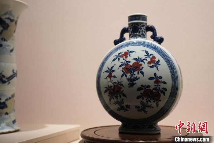 2月27日,正在“御瓷归来”展览上展出的“青花釉里红折枝石榴纹抱月瓶”。 刘思伟 摄