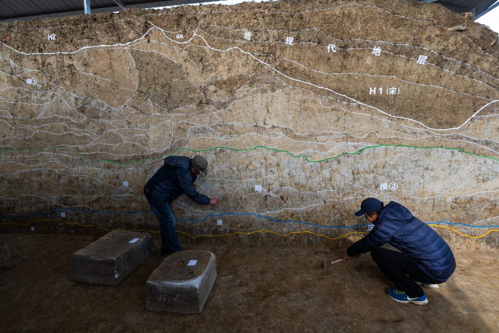 2023年12月4日,考古人员在熊家岭水坝遗址现场进行考古工作。新华社记者肖艺九 摄