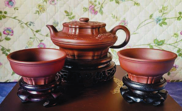 宋代诗人梅尧臣有诗云:“小石冷泉留早味,紫泥新品泛春华。”此壶正是用四海窑多年收藏的紫砂老泥为原料。值得一提的是,紫泥富含矿物质和独特的透气性,让茶水更加清醇可口。甲辰文龙壶还配了两只龙杯,上宽下敛,简约灵动,圈足也以筋纹装饰,使“寸柄之壶”与“盈握之杯”和谐完美而珠联璧合。(王琪森)