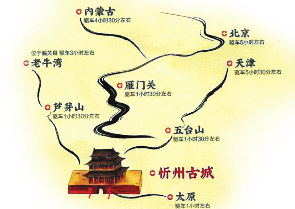 来到这里,你可以站在沟壑纵横、梁峁起伏的黄土高原,欣赏悬崖峭立、水石相激的晋陕峡谷,也可以在古木参天、浓荫蔽日的森林公园里散步,在百草茂盛、一望无垠的高山草甸上仰望星空。你可以游览世界文化景观遗产、佛教名山五台山,也可以领略秀容、岢岚、宁化、代州4座悠远古城的各有千秋,登攀三关营堡、历朝历代的边塞长城。你可以在偏关老牛湾古渡、河曲西口古渡摇橹渡河,回想晋商的辉煌,也可以身临夜袭阳明堡飞机场遗址,重温荣耀,感受历史的震撼……
