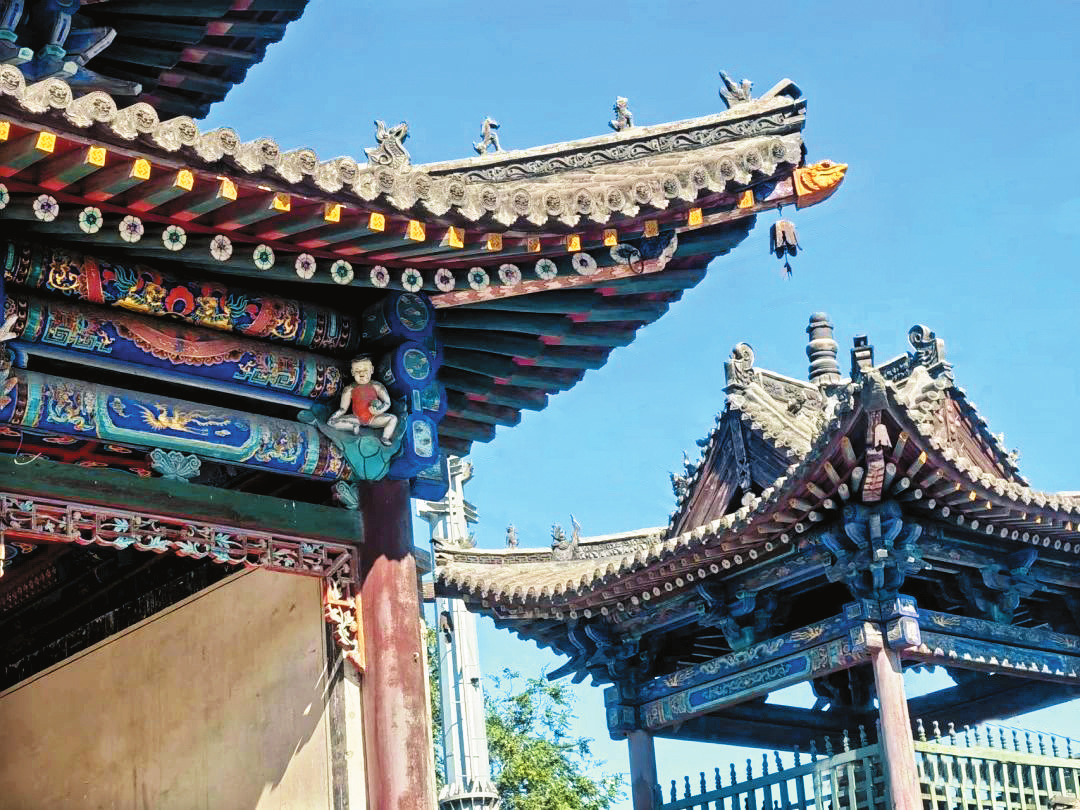 武庙内的主要建筑是按照帝王殿宇的规制和风格建造,以关帝殿为例,屋顶采用的是单檐庑殿顶,构架为七檩前后廊式,前后檐柱头科为五踩单翘单昂,前檐明次间施四扇六抹格扇门。庙内楹联所题文字均镶铜材,各殿塑像也多为铜制,这与代县历史上盛产铜且擅长制作铜器有很大关系。