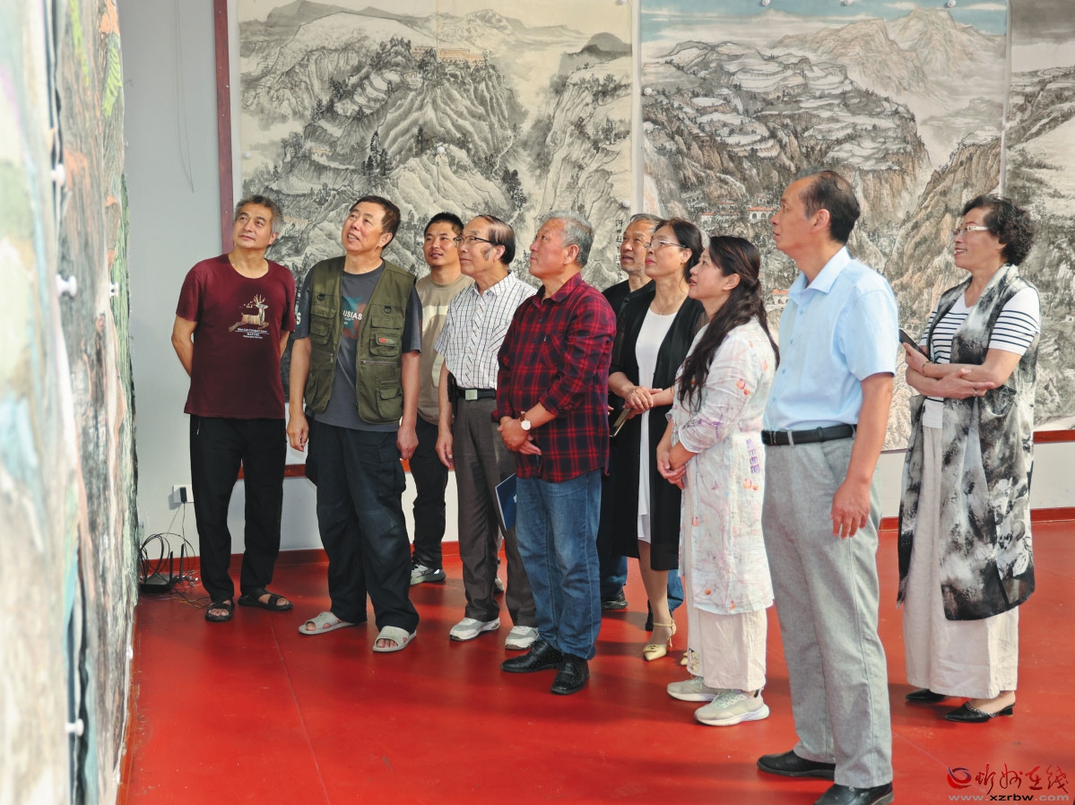 在赵家沟写生基地大院里,是古老的石碾、整齐的窑洞、兼具书画创作与展示功能的翠峰阁;大门外,是远离都市喧嚣的黄土高原绝美风光。记者到来时,由中国青绿山水画院组织的国展创作培训活动已接近尾声。