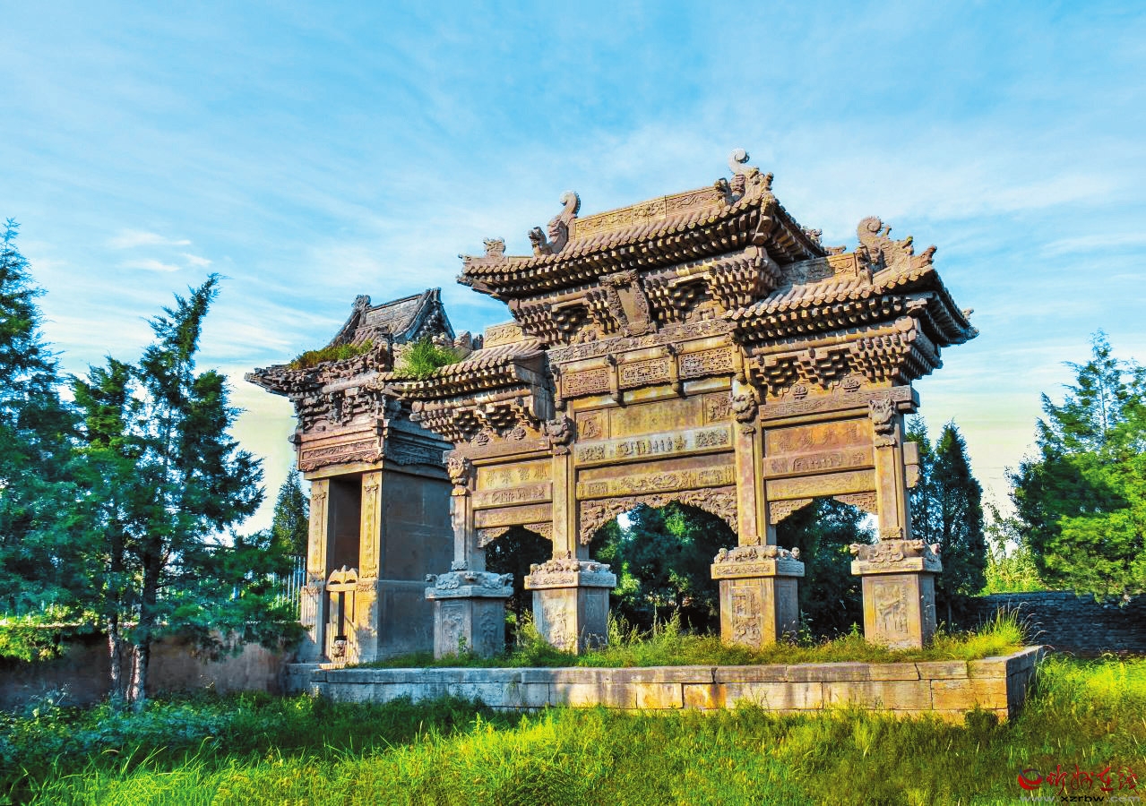 坐落于村中的朱氏牌楼是晚清中仪大夫、陕西延榆绥兵道加盐运使武访畴为其母所修的节孝牌坊。它不仅见证了朱氏家族的辉煌历史,也反映了当时社会的文化风貌,承载着丰富的历史文化内涵,为第八批全国重点文物保护单位。牌楼有主坊和配坊两座,主坊矗立在村内南街,面宽三间,四柱三楼,重檐歇山顶,高近11米、宽15米。栏板内剔底雕刻成一幅幅人物故事图案,霸王柱间镂雕丹凤朝阳。匾形走马板上书“柏舟矢志”“竹柏流芳”各四字。牌坊下檐明间置匾一块,书“圣旨”二字,两次间匾书分别为“懿范”“徽音”。配坊在村南,高8米有余,四柱三门,单檐歇山顶,规模略小,造型风格与主坊一样,皆为石雕艺术精品。