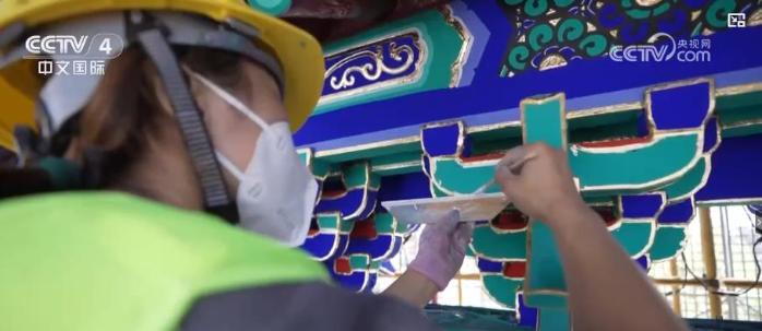 如今的北京中轴线构建起了现代都市与历史空间巧妙融合的城市景观。北京中轴线上的前门五牌楼曾因常年风吹日晒,导致油饰层开裂、失去华彩。2022年,古建油饰彩画专家坚持古法彩绘,对前门五牌楼进行了翻新,令牌楼呈现出恢弘大气的视觉效果。作为世界遗产的北京中轴线同时也是百姓日常工作生活的场景,这让北京中轴线成为了“活遗产”。而在北京中轴线的最南端,重新复建的永定门如今已经成为了百姓休闲和游客打卡的好去处。