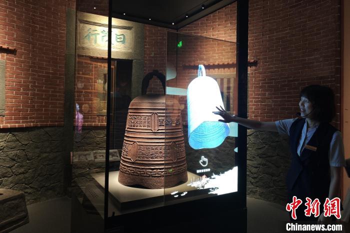 中国闽台缘博物馆里的众多涉台文物述说着两岸间难以割舍的情感纽带。图为清道光十七年鹿港郊公置铁钟。 吴冠标 摄
