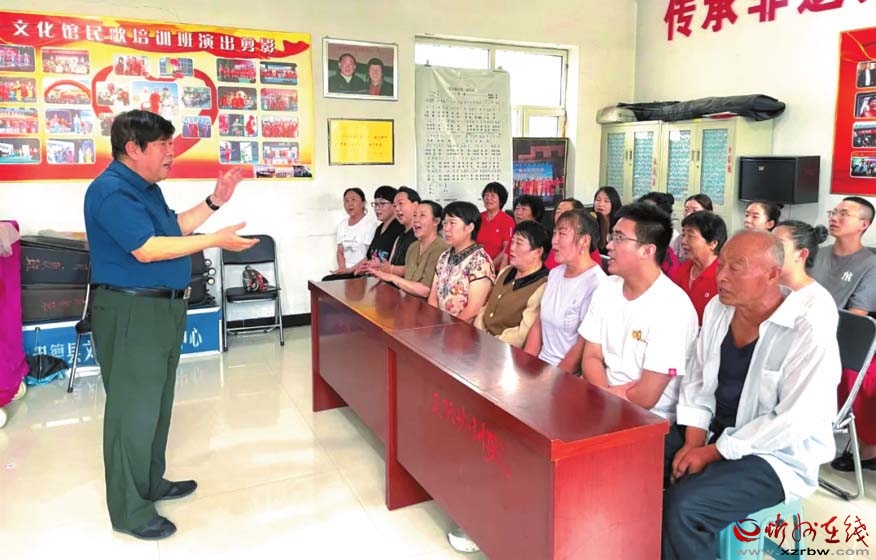 在保德县文化馆,山西省级非物质文化遗产项目(保德民歌)代表性传承人、“黄河之滨民歌王”杨仲青现场教授学员保德民歌唱法。 白 灏 摄