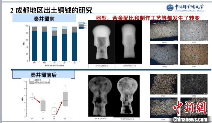 罗武干介绍说,此前罕见从铜冶金考古视角对秦并蜀进行解读工作。他们这次利用类型学、X光成像、合金成分及金相显微组织、微量元素、铅同位素等分析方法对秦并蜀前后蜀地铜鍪与铜钺两类青铜器进行分析,研究发现秦并蜀后,蜀地铜钺与铜鍪的器型、合金技术、制作工艺及铜、铅矿源均发生一定程度的变化。