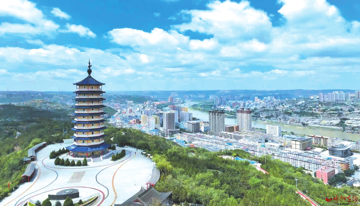 登塔远眺,黄河如绿绸带缠绕晋陕峡谷,黄土高原上的沟壑如大地掌纹,保德城烟火与山河雄奇交融,让人叹服晋西北的壮美与温柔。檐角风铃轻响,把山与城的故事,讲给每个登高者。