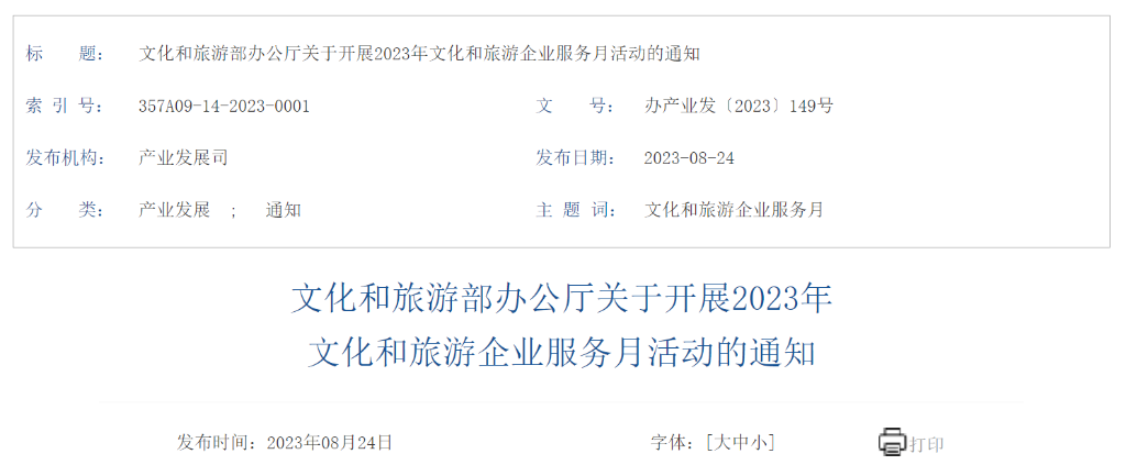 记者8月24日从文化和旅游部了解到,文化和旅游部将于9月开展2023年文化和旅游企业服务月活动。服务对象为各类文化和旅游企业,包括文化和旅游领域个体工商户。