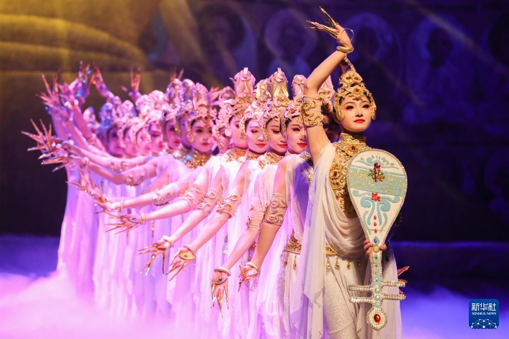 近日,中国经典舞剧《丝路花雨》在甘肃省兰州市的甘肃黄河剧院常态化驻场演出,甘肃省歌舞剧院的演员们演绎了优美动人的敦煌壁画舞姿。