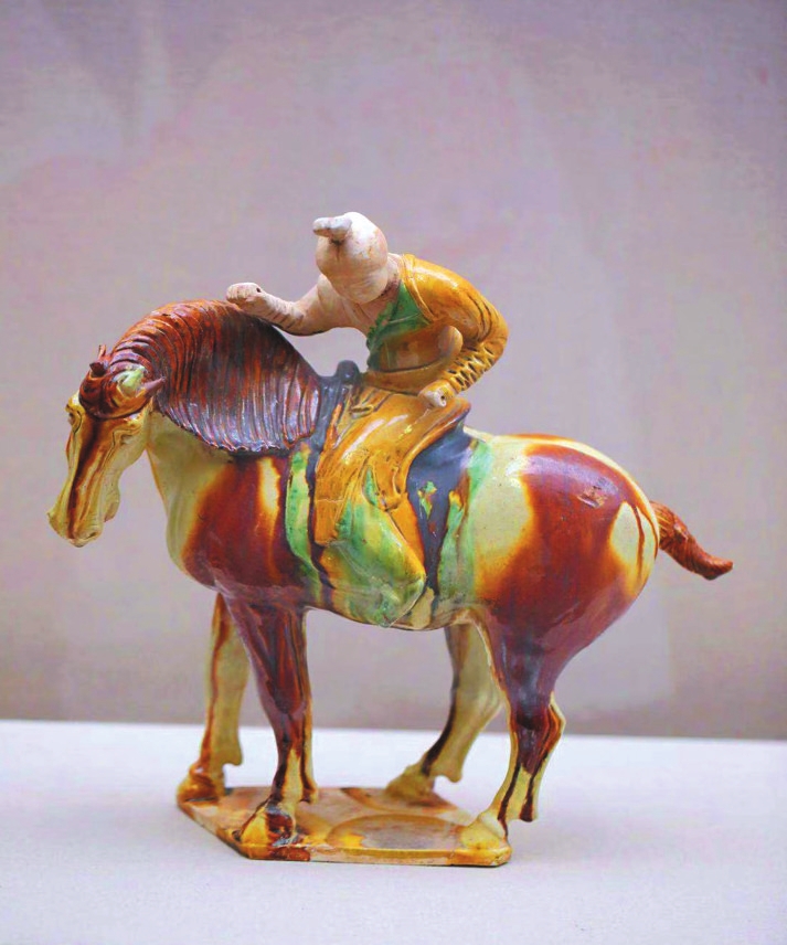 在扬州博物馆,有一面稀世唐代铜镜——打马球纹铜镜。目前,相对完好的这类镜子在我国仅存三面。该镜子背后纹有四名骑士手持鞠仗策马打球的画面,是风靡唐代的马球运动的见证。