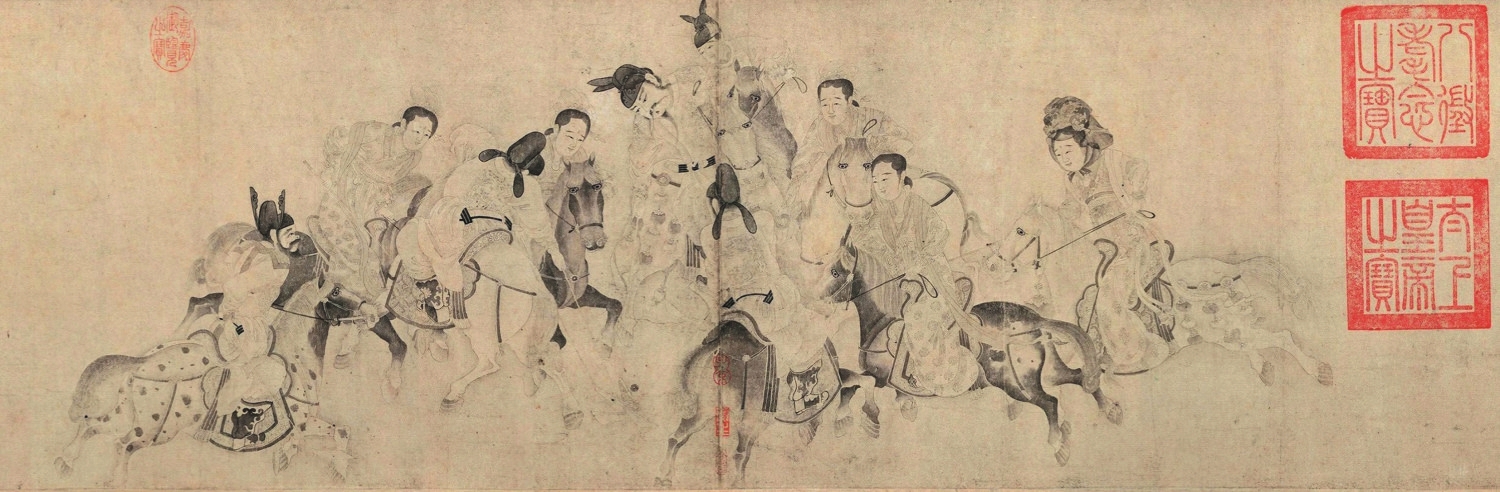 皇帝的热爱,加上兼具娱乐欣赏与实用价值,马球逐渐成为唐代时尚运动,唐代许多达官显贵爱好打马球。“球惊杖奋合且离,红牛缨绂黄金羁。侧身转臂着马腹,霹雳应手神珠驰。”在这首《汴泗交流赠张仆射》诗中,韩愈描写了名将张建封组织、参与马球游戏的情形,既写到球队的队形变化、球员击球的动作、豪华的马饰、球飞行的速度,也写到现场欢呼的观众,从中可见唐人对马球喜爱之甚。