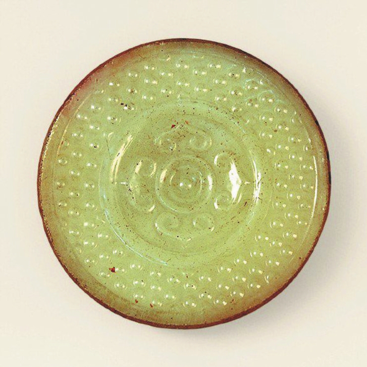 战国柿蒂纹谷纹玻璃剑首