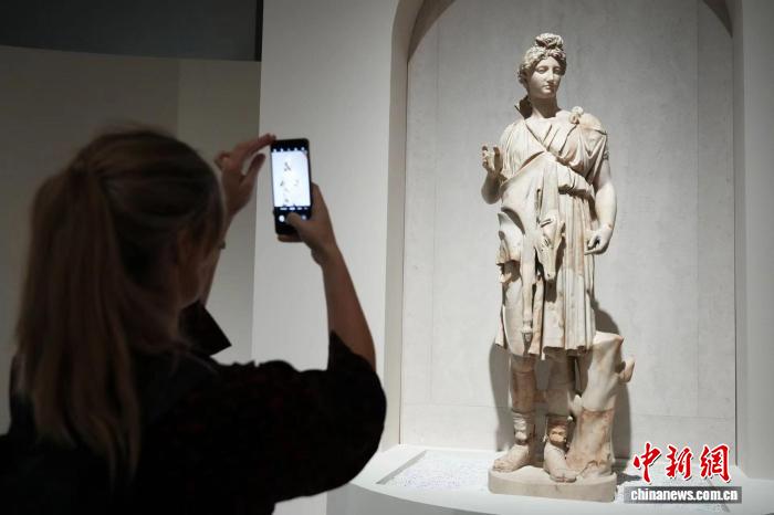 展厅里,宙斯(朱庇特)雕像、波塞冬(尼普顿)头像等近20件大型神像,揭示出古罗马人对古希腊神话的“创造性转化”。其中一件狩猎女神阿尔忒弥斯(狄安娜)雕像,文物保护员已鉴定出127件不同的大理石碎片,反映出制作者的高超技艺。