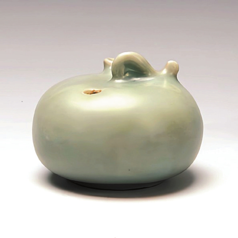 南宋龙泉窑粉青釉柿形瓷水注