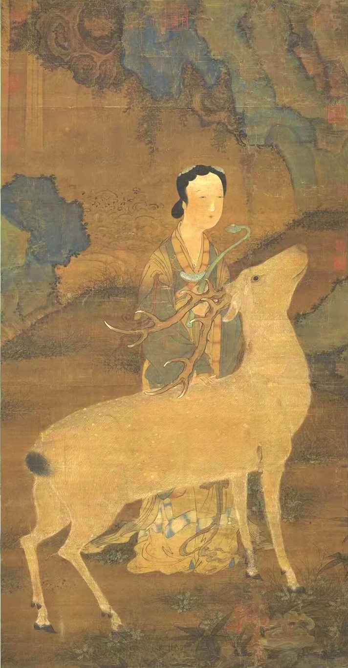 在传统文化中,鹿是一种有神力的动物,神话传说中鹿往往是神仙的坐骑。李白一生寻仙问道,其《梦游天姥吟留别》中有“且放白鹿青崖间,须行即骑访名山”之名句。南极仙翁的白鹿,不仅被绘制在寿画里,在文学中也大放异彩。《西游记》中的白鹿精就是寿星南极仙翁的坐骑,偷得寿星的蟠龙拐杖后下凡为妖。在《白蛇传》里,白娘子独闯昆仑山,欲盗取起死回生的灵芝仙草,遭遇鹤、鹿二仙童阻拦。清代神魔小说《女仙外史》中的鹿童化为道人,下凡后为祸人间。屡破票房纪录的动画电影《哪吒2》,其中的反派之一鹿童,是无量仙翁的大弟子,担任捕妖队头领,戏份颇重。