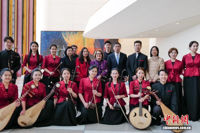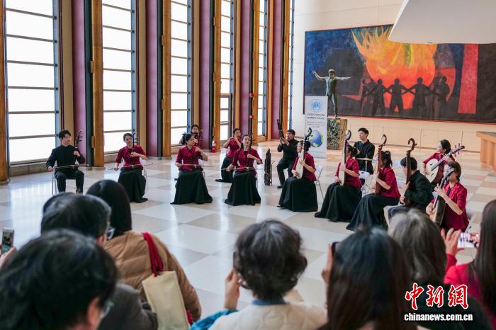 当地时间2月25日,来自中央音乐学院的民乐演奏家在纽约联合国总部上演快闪音乐会。图为音乐会现场。 中新社记者 王帆 摄