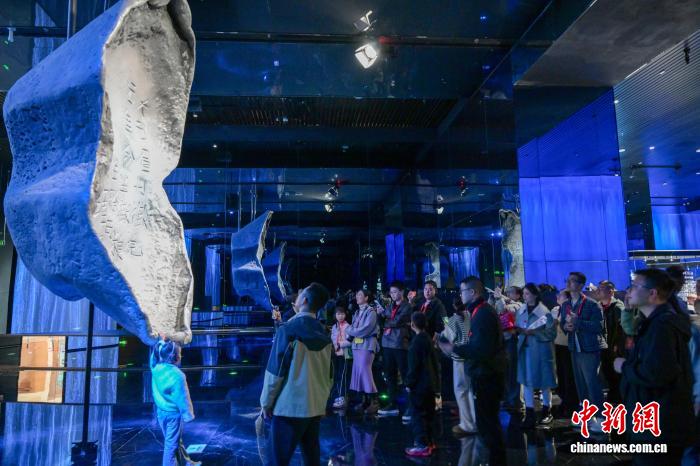 3月8日,四川省眉山市彭山区江口沉银博物馆迎来首批预约观众。图为参观者在博物馆内打卡拍照。 记者 刘忠俊 摄