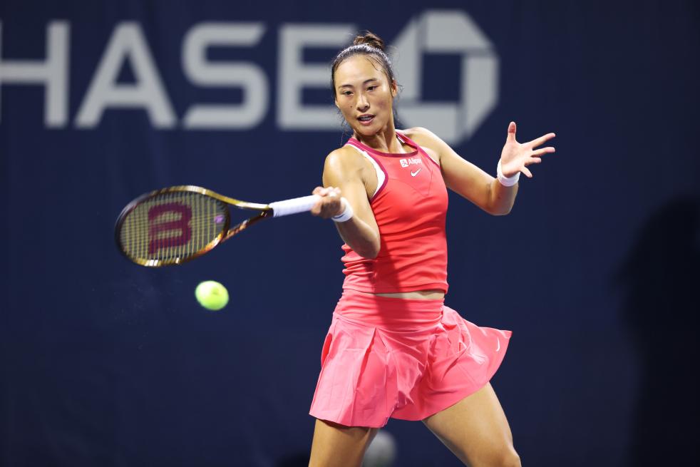 8月29日,郑钦文在比赛中回球。新华社记者 刘杰 摄
