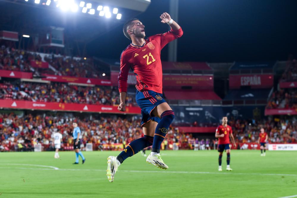 西班牙队上一轮以7:1横扫格鲁吉亚队,本次回归主场继续进球表演。新星加维第18分钟为“斗牛士”力拔头筹,他的巴萨队友弗·桑托斯则在下半场替补登场后连下两城。两连胜过后比同组对手都少赛一场的西班牙队以3胜1负积9分暂居第二,落后五连胜的苏格兰队6分。