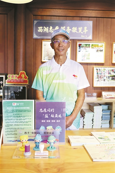 “不培训不上岗,不合格不上岗”,这是亚运城市志愿者上岗的“硬要求”,也是景区志愿者做好服务的“金名片”。年过七旬的志愿者施志平,已经连续在西湖边服务了11个年头。“最近的洗手间怎么走”“音乐喷泉在哪里看”“西湖游船哪里可以坐”,这些问题他一天不知要回答多少遍,“马上开亚运会了,会有更多人来到杭州、来到西湖,我也希望能够为杭州多做些贡献。”施志平说,“最近我们也从年轻人身上学到了很多技能,尤其是英语,希望到时候能为大家提供更周到的服务。”