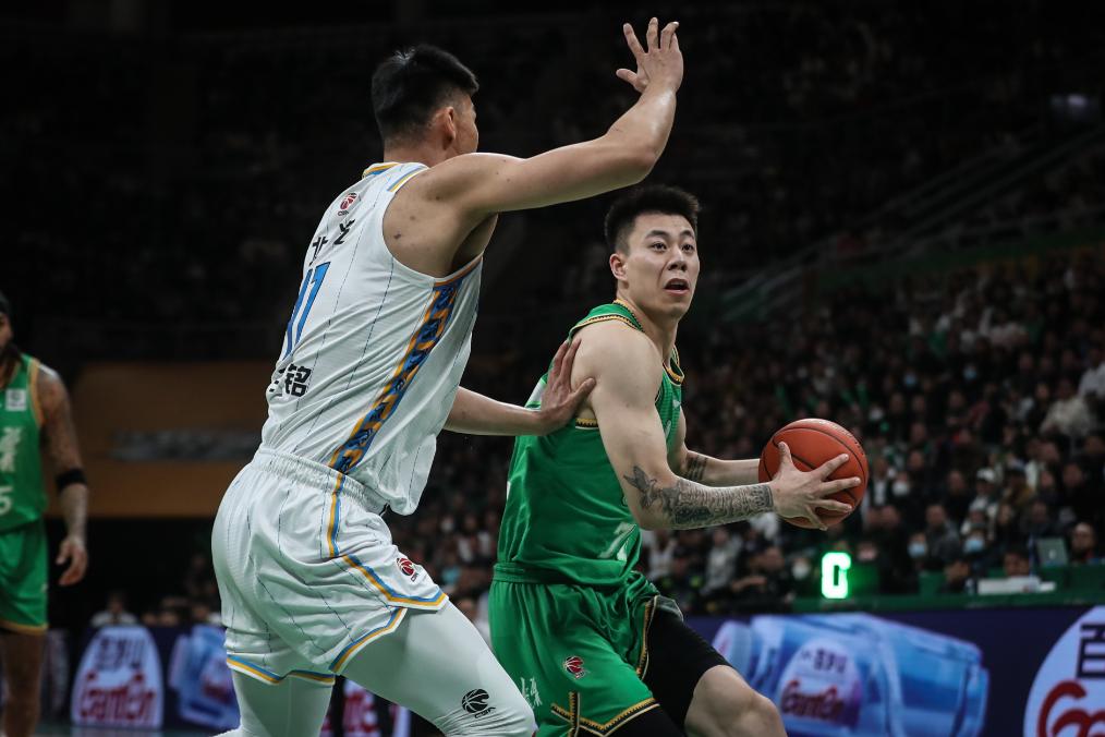 11月12日,辽宁队球员张镇麟(右)在比赛中持球进攻。新华社记者 潘昱龙 摄