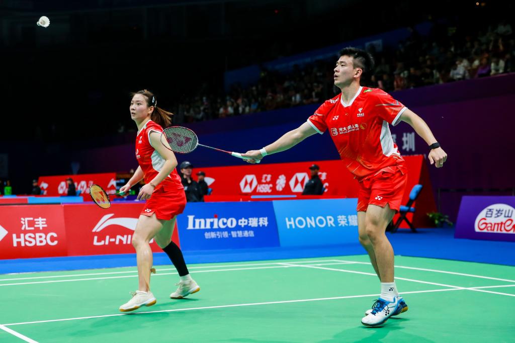 11月23日,郑思维(右)/黄雅琼在比赛中。新华社发(彭志刚摄)