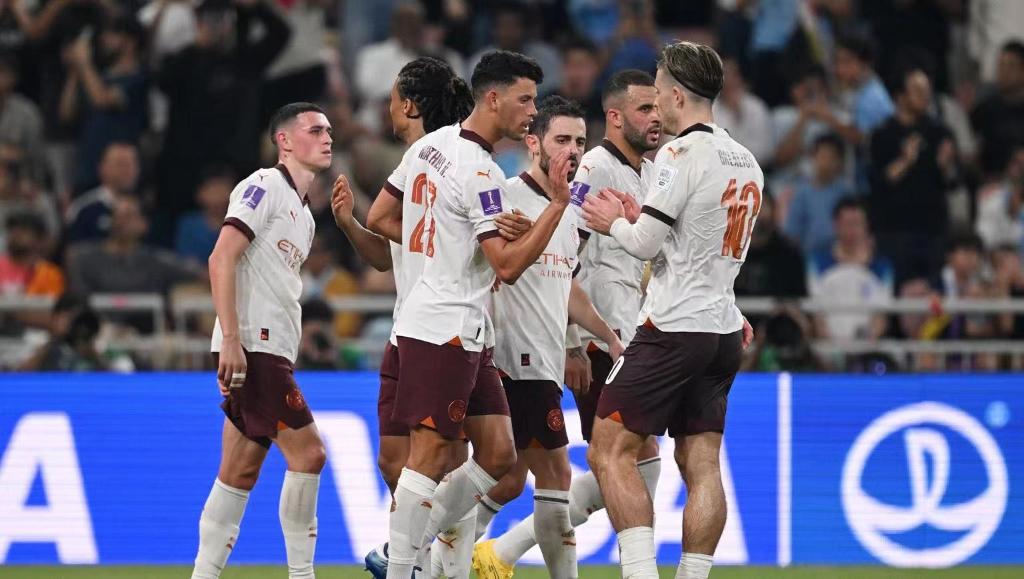 曼城队球员在比赛中庆祝。(图片来自国际足联官网)