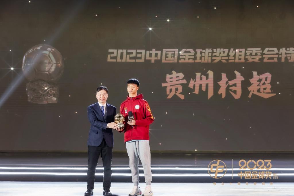 在2023年火爆出圈的贵州“村超”获评中国金球奖组委会特别奖,并受邀在颁奖典礼解读“村超”出圈密码并发布2024“村超”赛事规划。此外,中国足球裁判员马宁、傅明、周飞、张铖组成的裁判组执法了卡塔尔男足亚洲杯决赛,是中国裁判组历史上首次主哨该项赛事的决赛,同样被授予组委会特别奖。