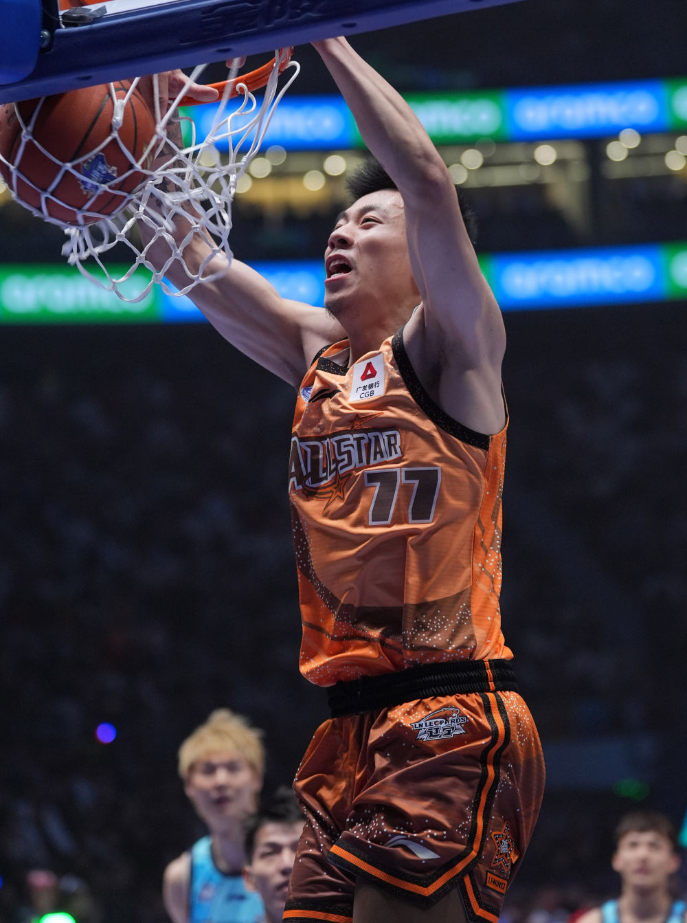 第四节,崔永熙和胡明轩连续得分,助南区队将比分反超。胡金秋坐镇内线,篮板得分“一把抓”,崔永熙飞身完成暴扣,南区队建立14分领先优势,最终获胜。
