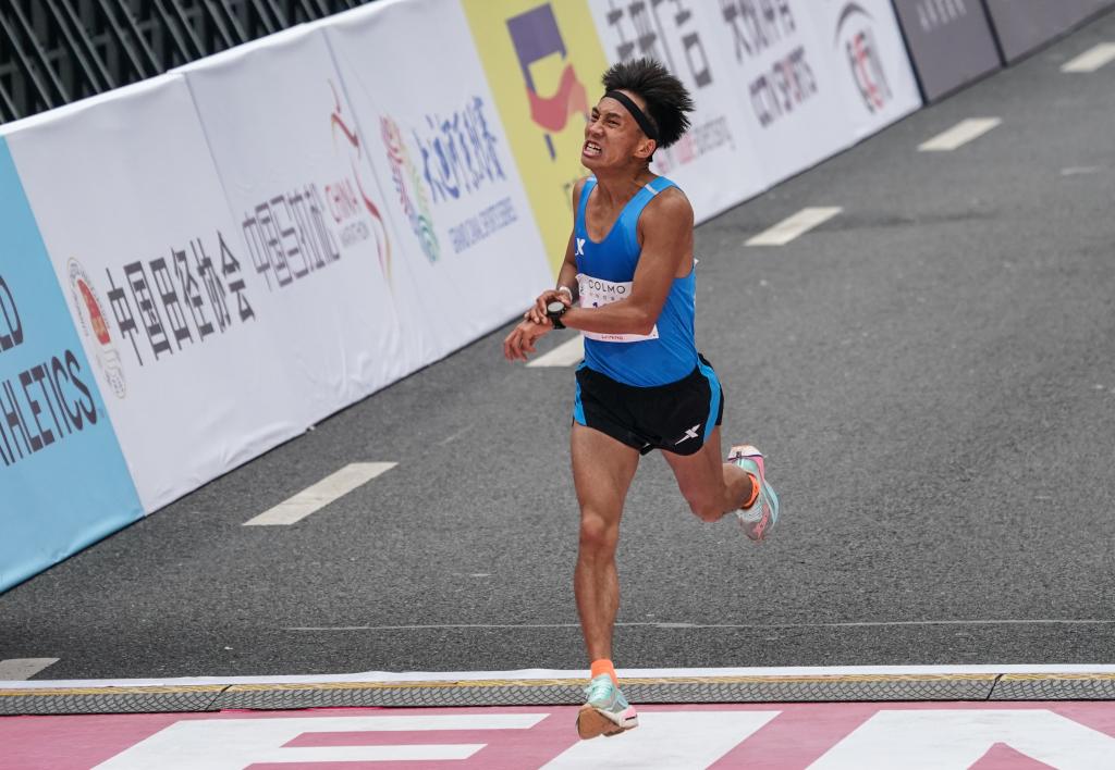 2023年3月19日,何杰在无锡马拉松比赛中冲过终点。新华社记者 杨磊 摄