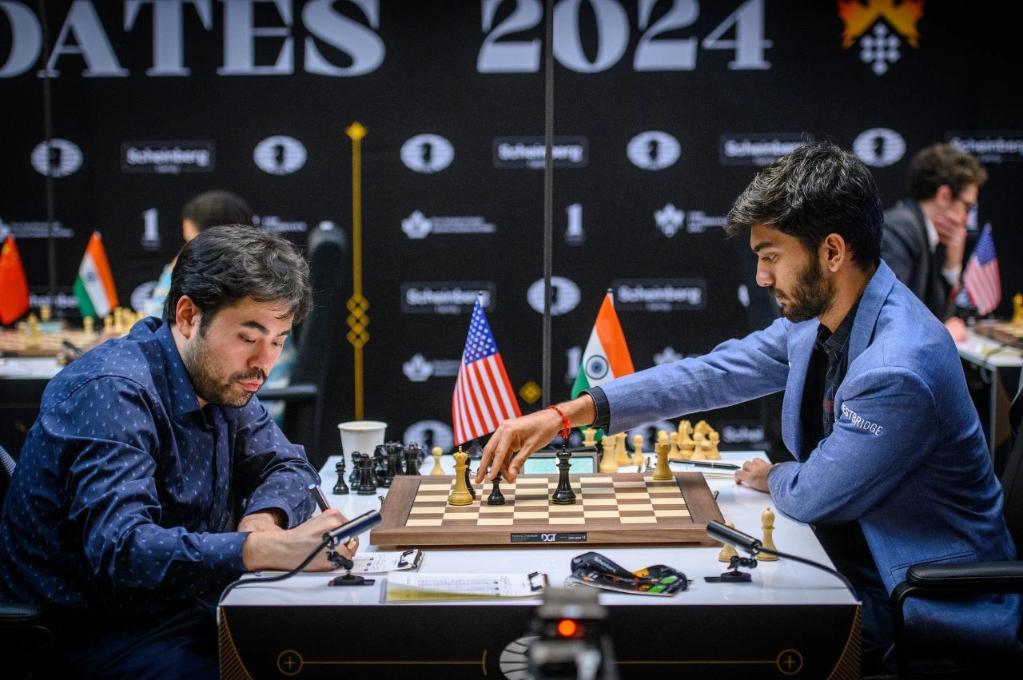 男子组方面,13轮过后形成第一集团的四人在最后一轮捉对厮杀,以0.5分优势领先其余3人的印度新星古克什对战美国棋手中村光,另一位美国棋手卡鲁阿纳对阵俄罗斯棋手涅波姆尼亚奇。最终两组对局均以和棋告终,古克什积9分夺冠。