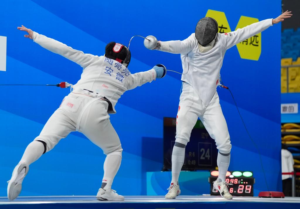 男重团体决赛中,由张新堃、杨丰名、于梦想、龙龙组成的辽宁队43:36战胜国手兰明豪、俞乐凡领衔的安徽队,收获本赛季全国击剑冠军赛分站赛两连冠,于梦想也连续两站比赛为辽宁队得到最高分。