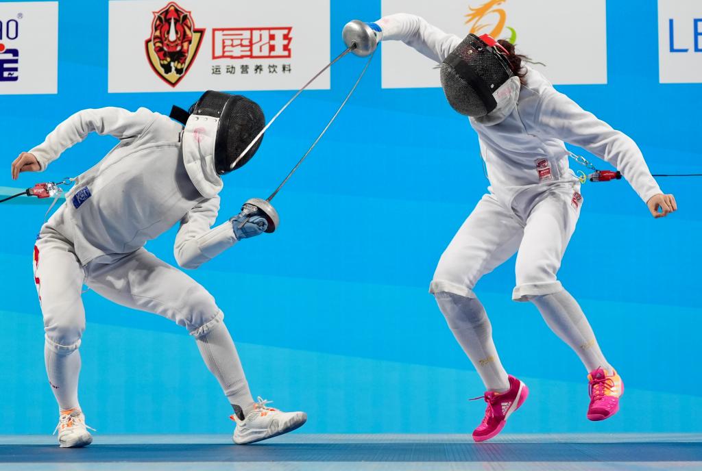 江苏二队李欣遥(左)与山东队侯光娟在比赛中。