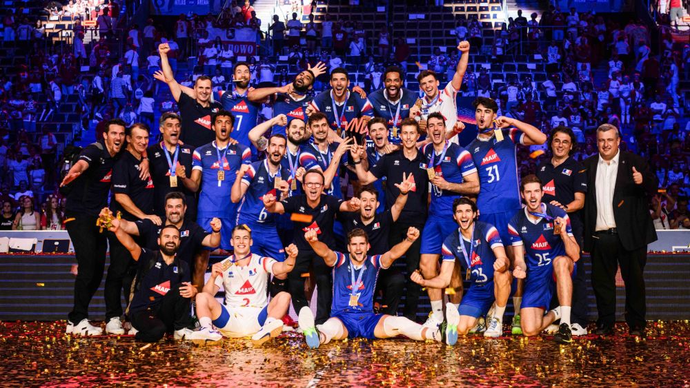 6月30日,法国队在庆祝夺冠。图片来自国际排联官网。
