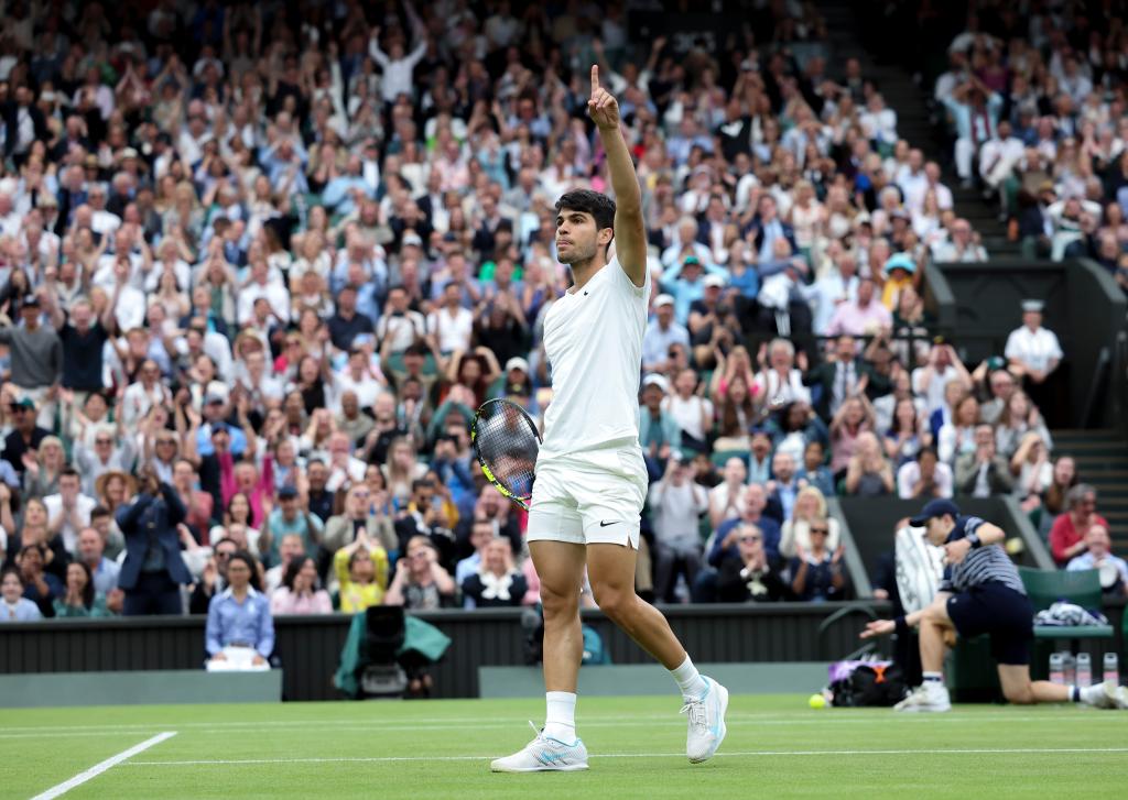 男单方面,阿尔卡拉斯顶住法国人安贝尓的后程发力,以6:3、6:4、1:6、7:5胜出。意大利的世界第一辛纳则赢得相对轻松,他以6:2、6:4和7:6(9)送走了美国的14号种子谢尔顿。