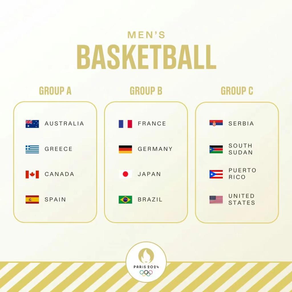 巴黎奥运会男篮比赛7月27日在法国里尔开始,揭幕战是澳大利亚队对阵西班牙队。小组赛每组前两名直接晋级八强,另外两个名额给小组赛战绩最好的两支第三名球队。小组赛阶段结束后,四分之一决赛开始将移师巴黎继续角逐,直至产生最后的金银铜牌。