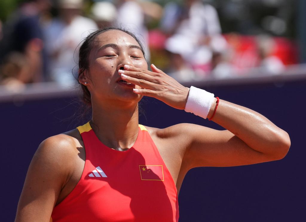 7月29日,郑钦文在赛后向观众致意。 新华社记者 万象 摄