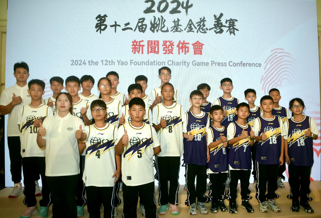 8月19日,姚基金小球员在新闻发布会上合影。新华社记者 卢炳辉 摄